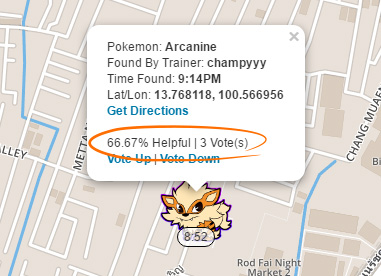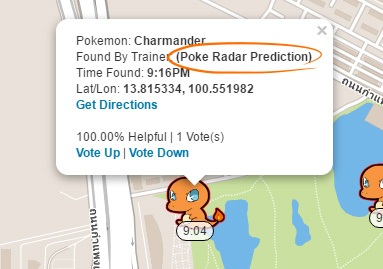 ซึ่งถ้าเขียนว่า Poke Radar Prediction แปลว่าทำนายโดยระบบ อันนั้นไว้ใจได้ว่าน่าจะจริงเกือบ 100% ไปได้เลย แต่ถ้าเขียนเป็นชื่อผู้ใช้ ให้ใช้วิจารณญาณเอาเองว่าจริงหรือไม่ ปกติถ้าเกิดเป็นมอนตัวแปลกๆหายากมากๆและถูกผู้ใช้แจ้งมักจะเป็นเรื่องโกหก แต่บางทีก็อาจจะไม่โกหกก็ได้ วิธีคือให้ดูตรงช่อง Helpful ว่ามีคน Vote กี่คนและ Helpful กี่ % ถ้าโกหกเลขนี้จะตกลงเรื่อยๆ 20% เอย 10% เอยตามจำนวนคนโหวตครับ