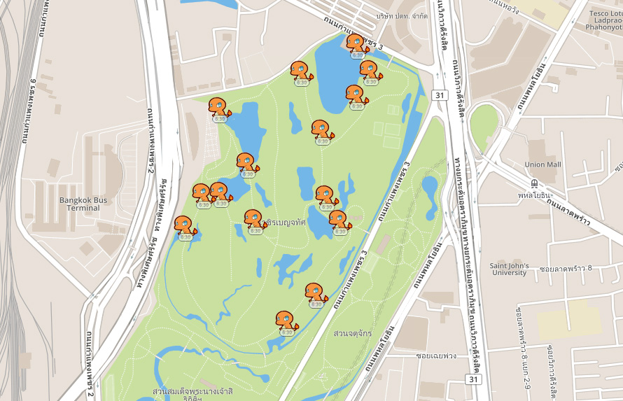 เนื่องจากว่าสวนรถไฟใหญ่มาก หากขี่จักรยานรอบสวนจะยาวถึง 2,580 เมตร ถ้าจะให้เดาว่ามันเกิดตรงไหนก็คงจับได้แค่ตัวสองตัวเพราะแต่ละตัวเกิดมาแค่ 5-10 นาทีเท่านั้น ดังนั้นต้องมีเครื่องมือกันนิดหน่อยเพื่อที่จะได้พุ่งไปจับทัน เครื่องมือที่ว่านี้คือ Pokemon Radar Go เว็บที่เอาไว้ดูว่ามีมอนเกิดตรงไหนและมีเวลาเหลือเท่าไหร่!