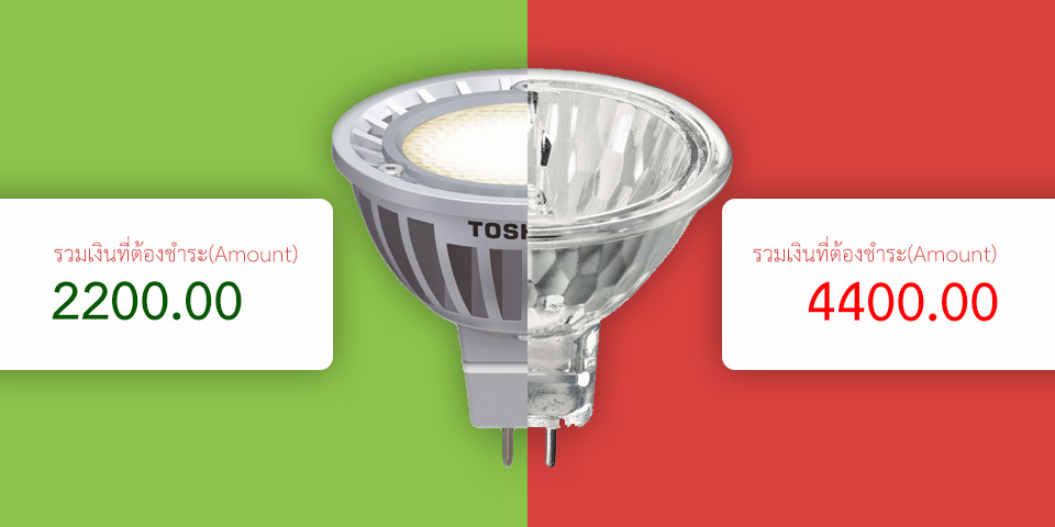 เห็นแบบนี้ก็น่าจะจูงใจให้อยากเปลี่ยนแล้วป่ะ นั่นแหละครับ แค่เปลี่ยนจาก Halogen มาเป็น LED ค่าไฟในส่วนของหลอดไฟก็ลดไปแล้ว 10 เท่าทันที หรือถ้าเปลี่ยน CFL เป็น LED ก็ลดไป 2 เท่าสบายๆ