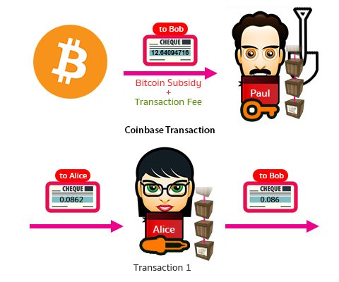 โดยเวลาจะให้คนโอนเช็คมาให้บัญชีเรา เราก็แค่เอา Bitcoin Address ให้เค้า เค้าก็จะโอนให้เราได้ทันที (มันเลยชื่อว่า Public Key [Hash] ไง ใครเอาไปใช้ก็ได้) ส่วน Private Key เราจะเอาไว้เคลมว่าเช็คใบนั้นเป็นของเราครับก็เลยต้องเก็บไว้คนเดียวห้ามให้คนอื่น