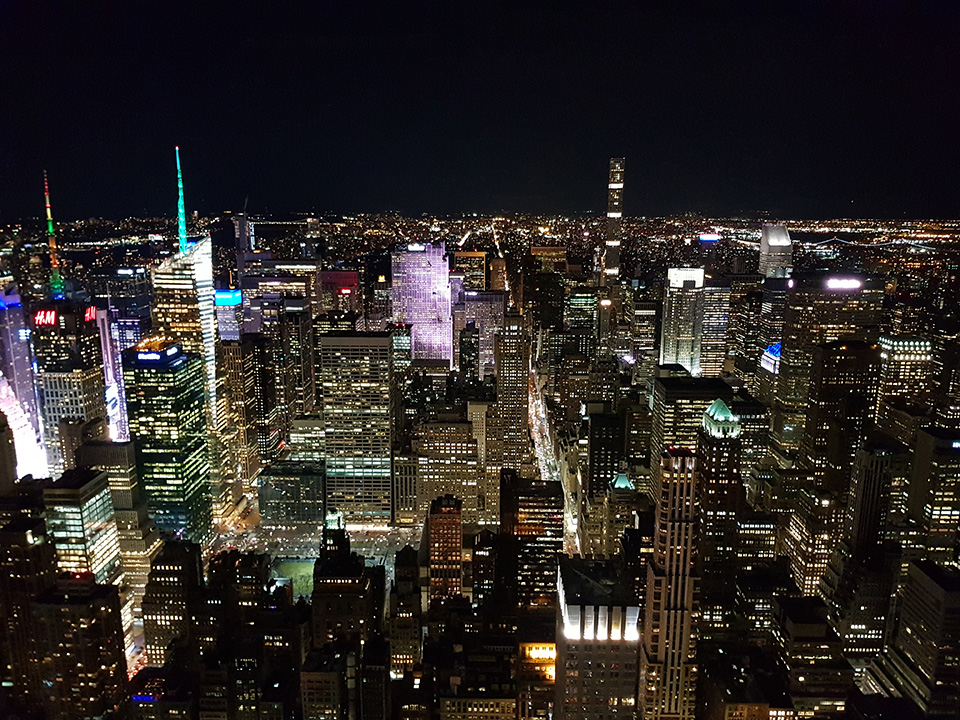 ภาพนี้ถ่ายจากบนตึก Empire State ในสภาพมืดมากเช่นกัน แต่เนื่องจาก Empire State ไม่อนุญาตให้เอาขาตั้งกล้องขึ้นไป แถมข้างบนก็หนาวมาก ๆ ๆ ๆ ๆ ๆ ๆ ๆ ๆ ๆ ตอนขึ้นไปก็ 3 องศาพร้อมลมพัดตลอดเวลา ก็เลยต้องใช้วิธีถ่ายแบบอัตโนมัติแทน ก็คือไม่เซตอะไรเลย หยิบมือถือมาถ่ายแช๊ะ จบ และนี่คือผลลัพธ์ครับ
