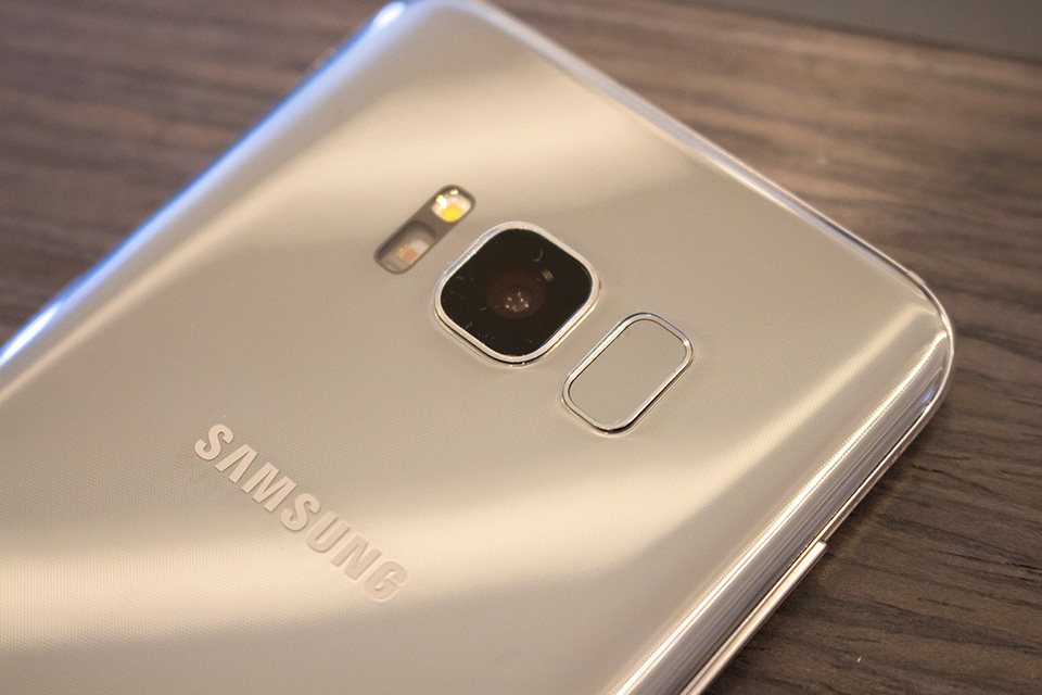 พอปุ่ม Home หายไป ตัวสแกนลายนิ้วมือก็เลยต้องย้ายไปอยู่คนเดียว แล้วจะไปอยู่ไหนได้หละในเมื่อข้างหน้าก็ไม่มีพื้นที่จะใส่อะไรแล้ว ? ... ก็ย้ายไปด้านหลังไง โดยซัมซุงเลือกจะวางไว้ข้าง ๆ กล้อง เพราะว่าในท่าจับปกตินิ้วมือจะไปอยู่บริเวณนั้นพอดีอยู่แล้ว