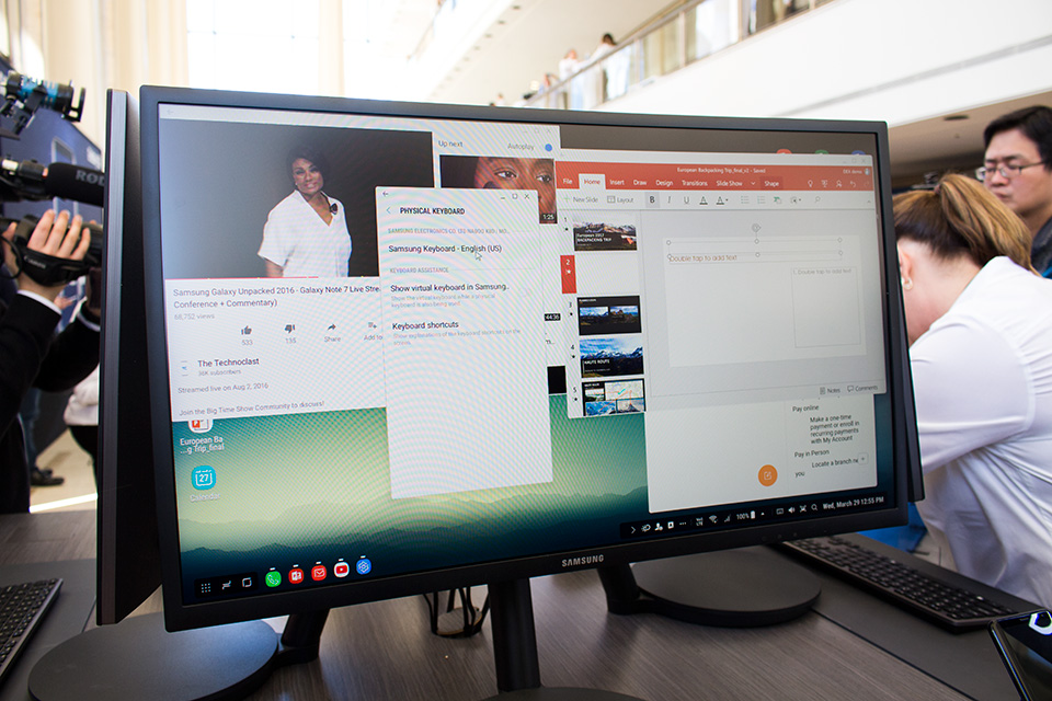ระบบปฏิบัติการณ์บน DeX ก็คือแอนดรอยด์ตัวนึงนี่แหละ แต่จะอยู่ในโหมด Desktop และสามารถใช้งานแอป ฯ ที่สนับสนุน Multi-Window ของ Android N ได้ ซึ่งตอนนี้ก็มีอยู่หลายตัวที่พร้อมใช้งานแล้ว เช่น Office, YouTube, Adobe Acrobat, Lightroom ฯลฯ
