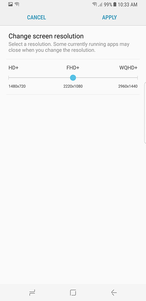 แต่การที่จอละเอียดมาก บางแอป ฯ ก็อาจใช้พลังการประมวลผลสูงจนกระทบต่ออายุการใช้งานของแบต ฯ ในแต่ละวันได้ เอาจริง ๆ แล้วตาหลาย ๆ คนก็แยกพิกเซลไม่ออกตั้งแต่ Full HD แล้วหละ ดังนั้น S8 จึงสามารถปรับความละเอียดหน้าจอลงเหลือ Full HD+ (2220x1080 พิกเซล) และ HD+ (1480x720 พิกเซล) ได้ด้วย เหมือนตอน Note 7 เป๊ะ