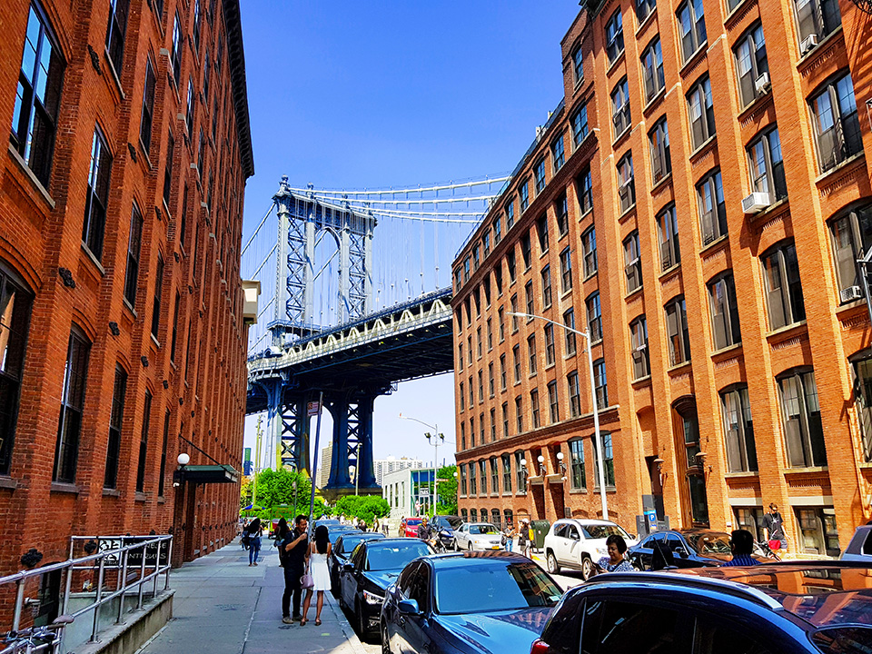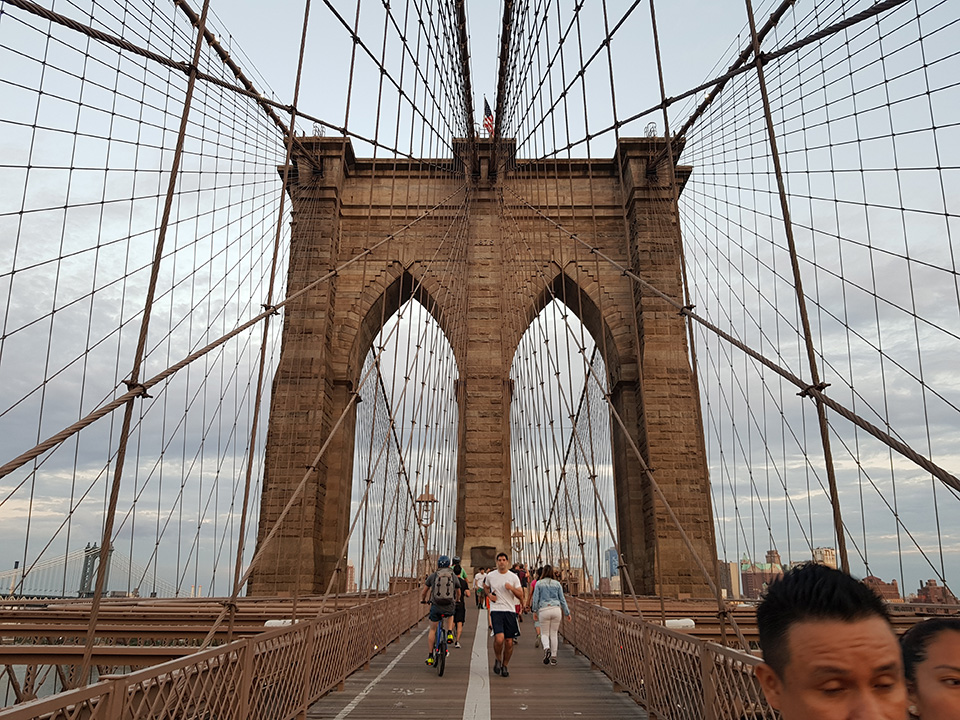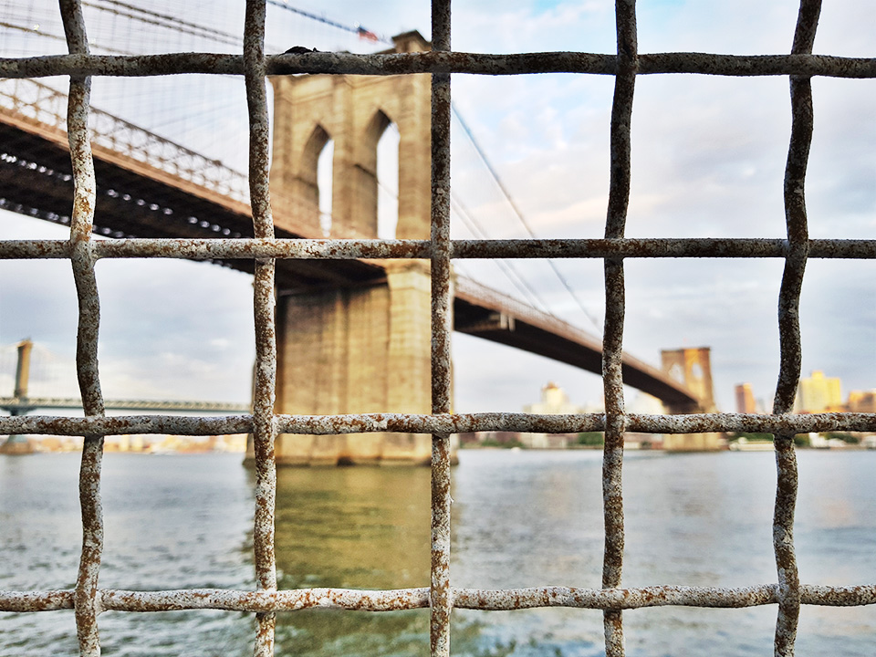 ภาพต่อไป Brooklyn Bridge สภาพแสงตอนเย็น พระอาทิตย์อยู่ตรงขอบฟ้าแล้ว บรรยากาศโดยรวมค่อนข้างหลัว ๆ คือแสงไม่สวยเลย ตอนกด JPG ออกมาเลยได้เป็นภาพแบบนี้
