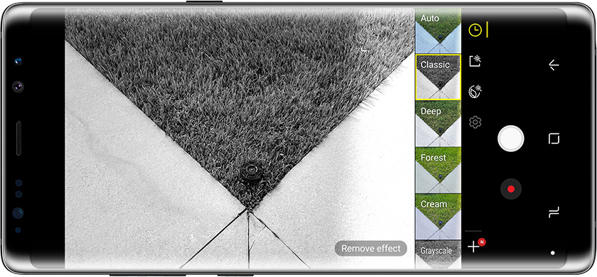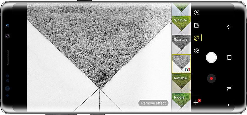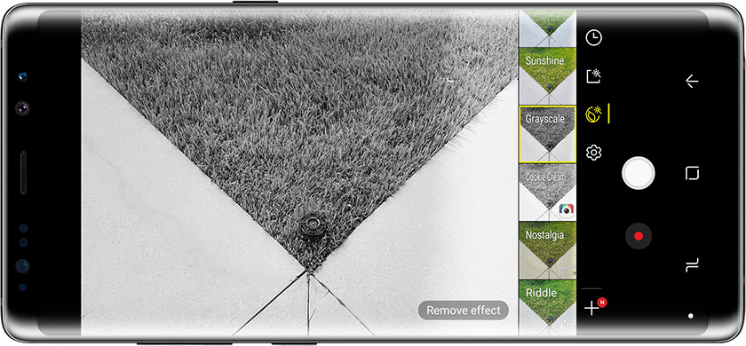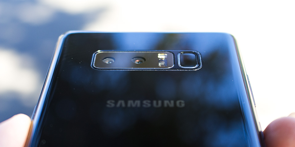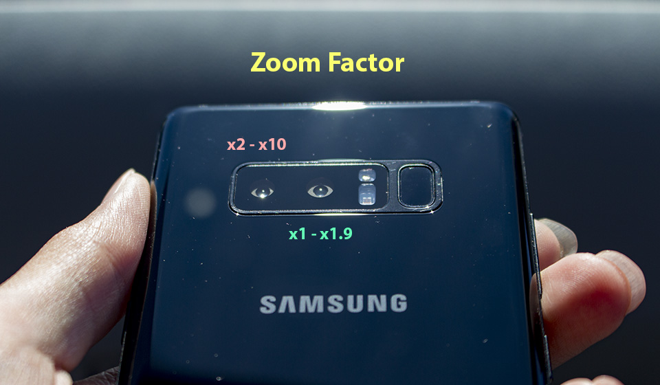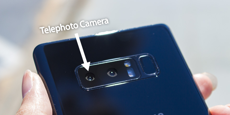 กล้องของ Note 8 มีอยู่สองตัววางขนาบข้างกัน ประกอบด้วยกล้อง Wide-angle และกล้อง Telephoto ตรงตำแหน่งตามภาพนี้