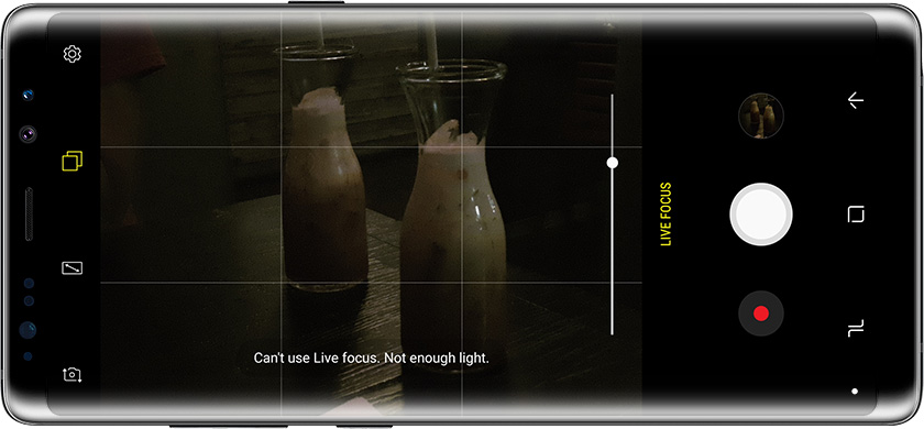 และถ้าให้พูดถึงฟีเจอร์เด็ดของเจ้า Note 8 ก็คงหนีไม่พ้นเจ้า Live Focus หรือโหมดหน้าชัดหลังเบลอจากความสามารถของกล้องคู่นั่นเอง อันนี้จะเป็นฟีเจอร์ที่ใช้งานได้ในโหมด Auto เท่านั้น วิธีการเปิดใช้งานก็ง่ายมาก แค่กดตรงคำว่า Live Focus ก็เป็นอันเรียบร้อยยย กดง่าย ปุ่มใหญ่มาก