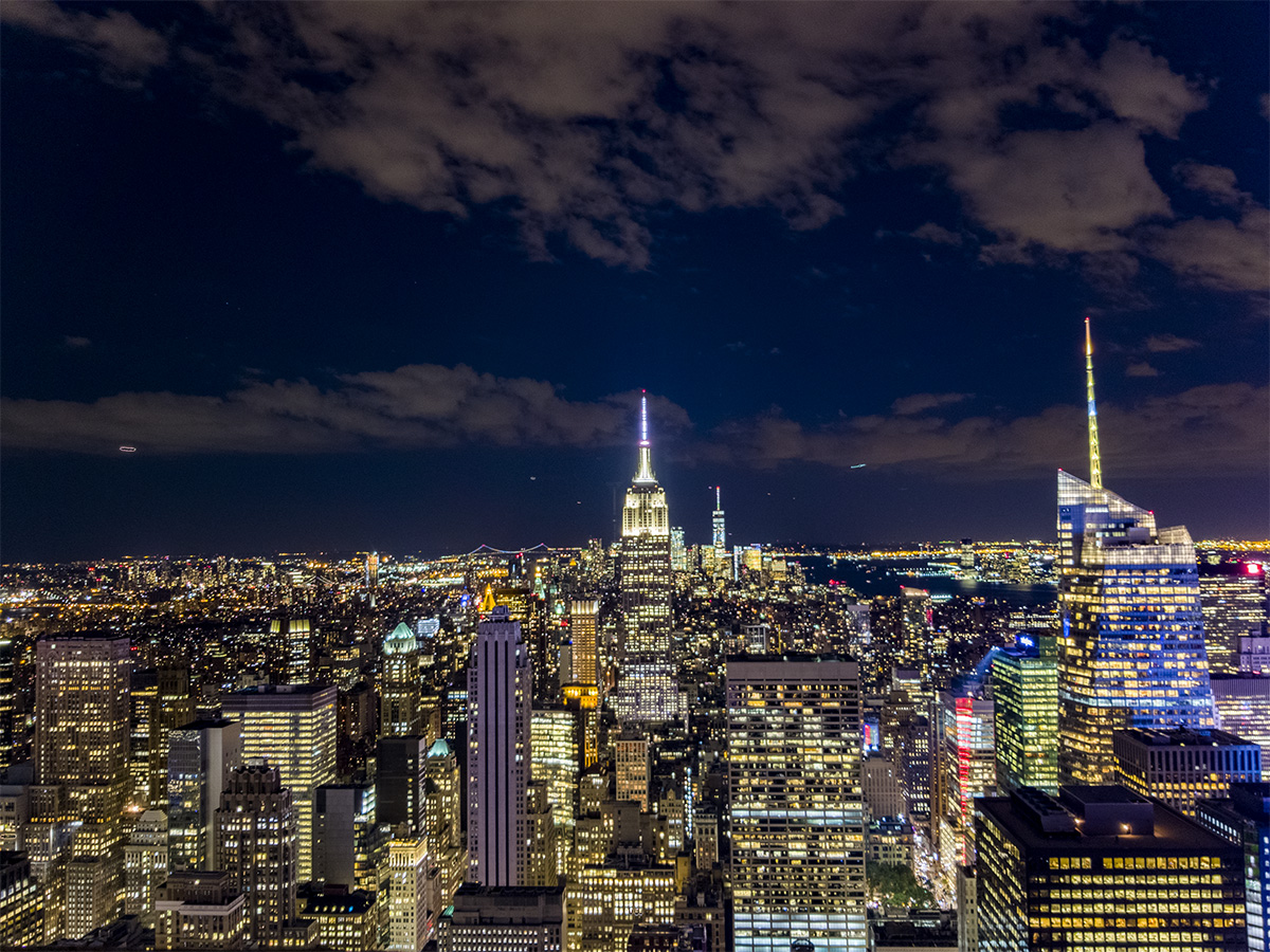 หรือภาพนี้ เป็นการถ่าย Cityscape ตอนกลางคืนจากยอดตึก Rockafellar (Top of the Rock) ที่แสงของตึกในเมืองและท้องฟ้าไม่เท่ากันเลย เลยต้องถ่ายหลายรูปหน่อยแล้วจับมารวมกันซะ