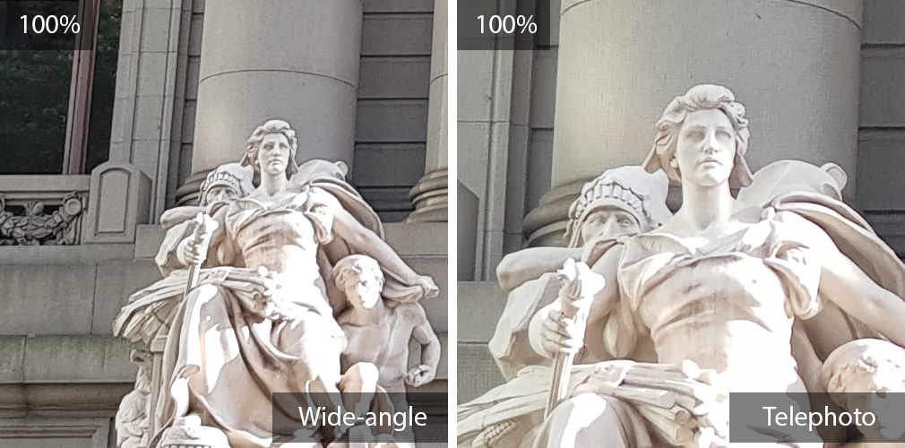 ทั้งนี้เพราะว่า กล้อง Telephoto รูรับแสงแคบกว่า (F2.4) และไม่สนับสนุน Dual Pixel ในสภาพแสงน้อยมันเลยไม่สามารถถ่ายภาพออกมามีคุณภาพได้นั่นเอง ตัวซอฟต์แวร์เลยฉลาดพอที่จะตัดสินใจสลับกลับไปใช้ Wide-angle ซึ่งรูรับแสงกว้างกว่ามาก (F1.7) และยังสนับสนุน Dual Pixel ที่เก่งในการถ่ายภาพในที่มืดอีกด้วย